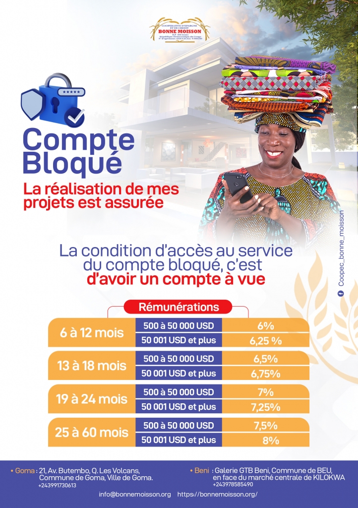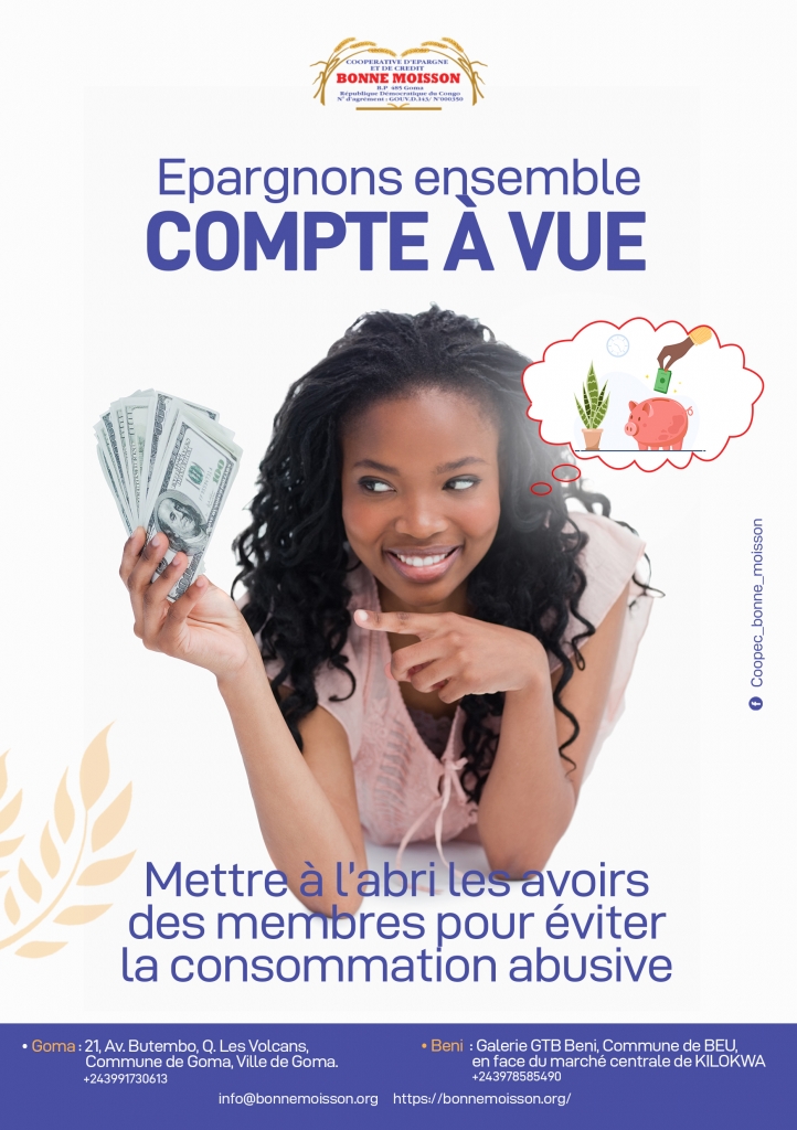 COOPEC Bonne Moisson intervient beaucoup plus dans l’éducation coopérative et financière ainsi que la fourniture des services financiers aux bénéficiaires du Projet qui oeuvrent tous dans la châine des valeurs Café, Cacao, Riz et Maïs en territoires de Beni et Ituri.
